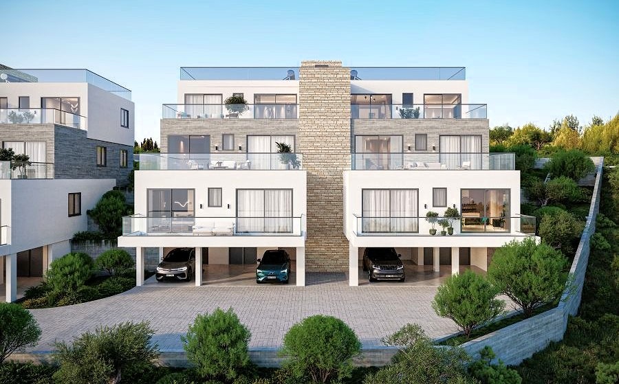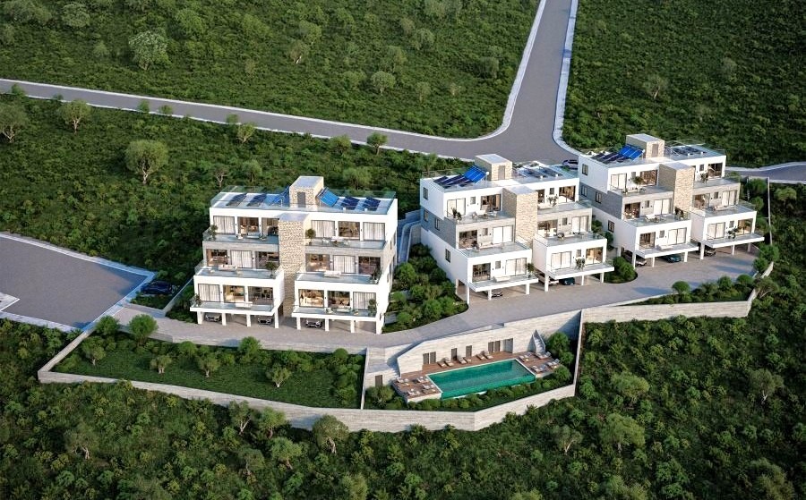 These new apartments in Chloraka village are designed to offer bright, spacious, and ergonomic interiors. Large windows will offer panoramic sea views and flood the spaces with natural light.