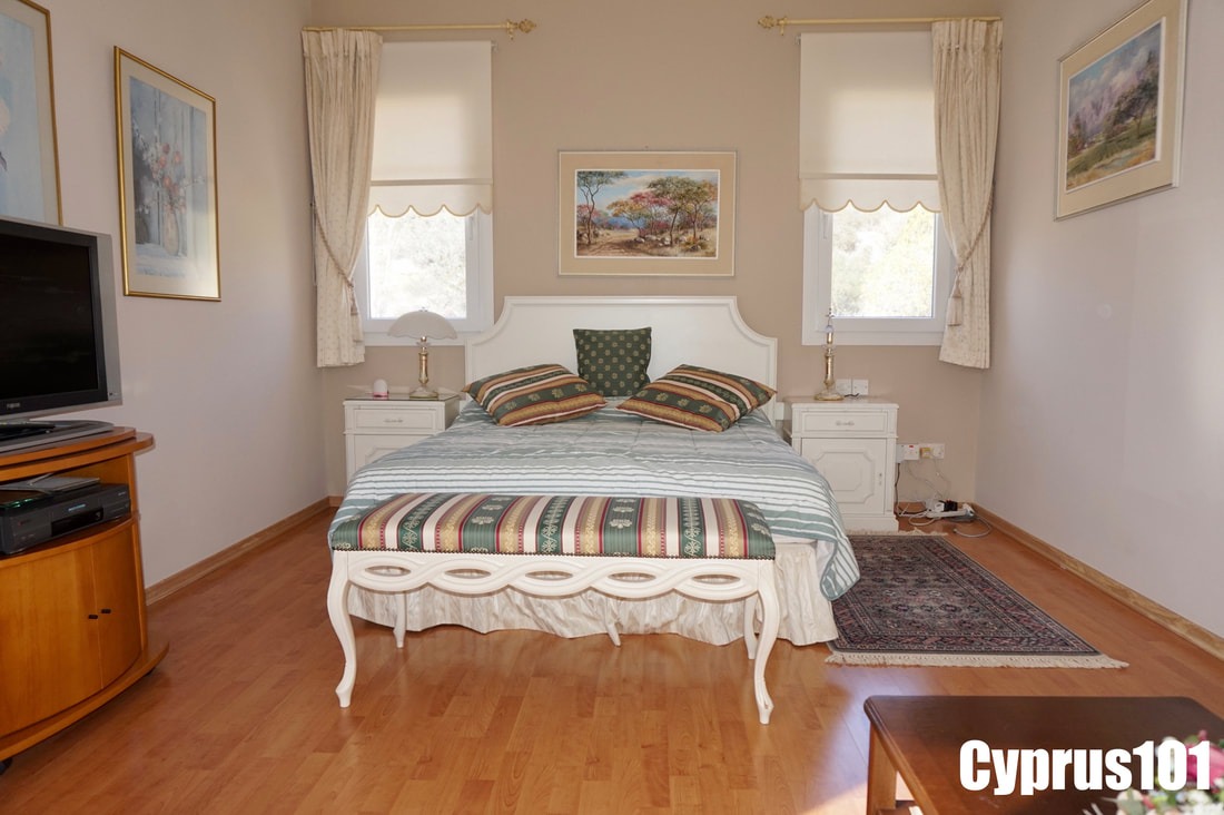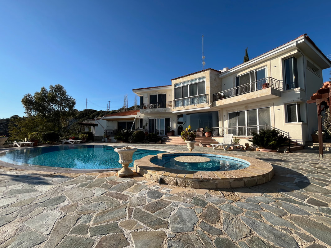 This impressive family residence is idyllically situated on a tranquil 2500 sqm plot in a beautiful hillside setting midway between the popular villages of Peyia and Kathikas,