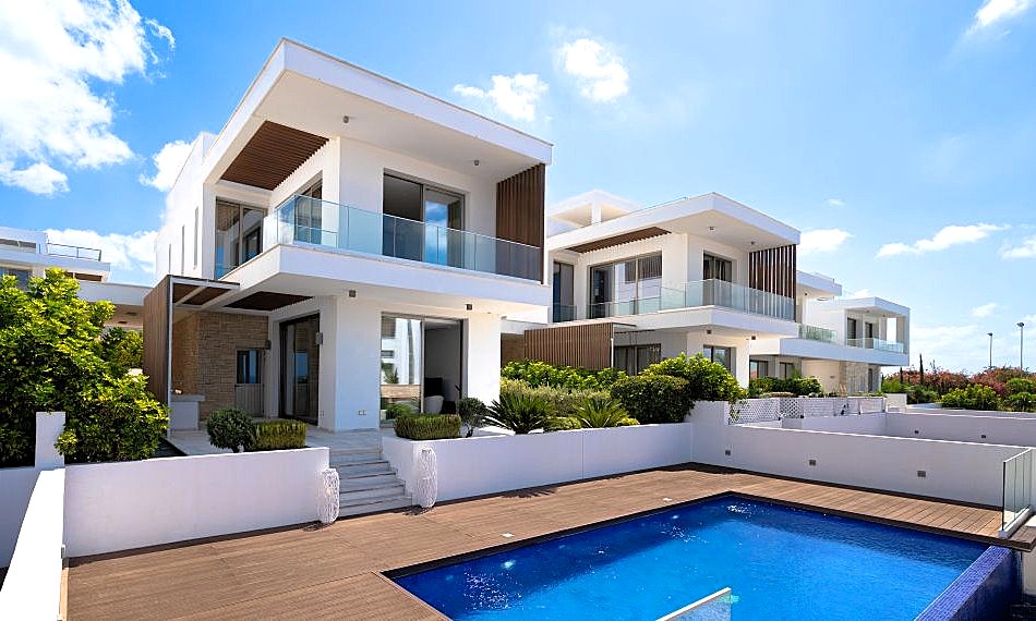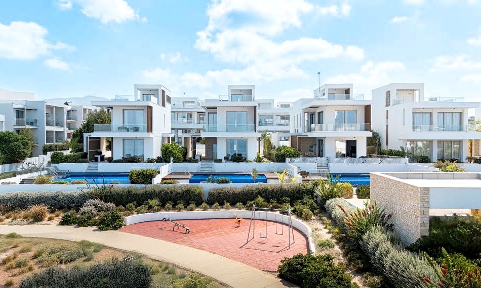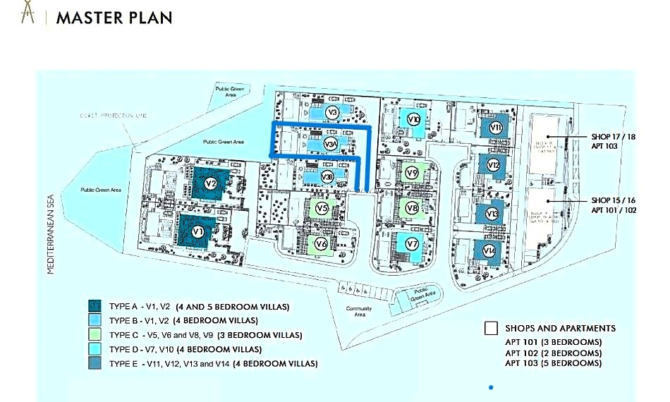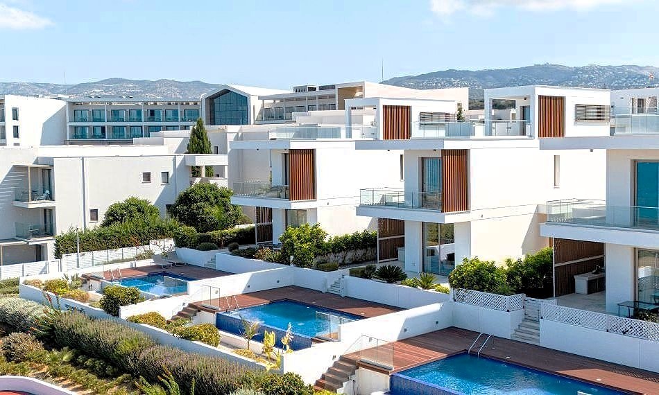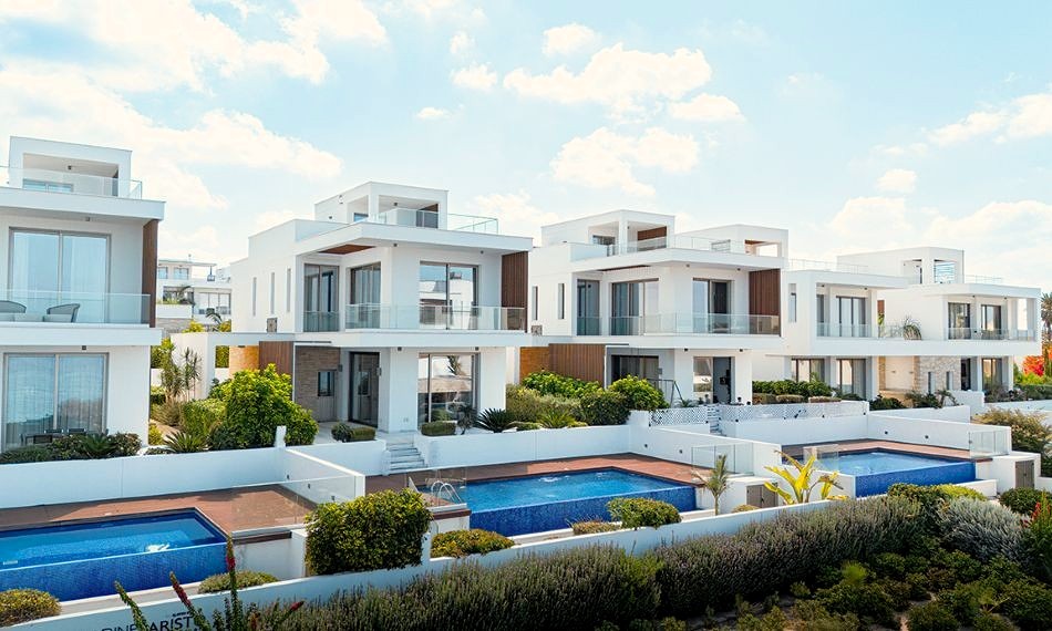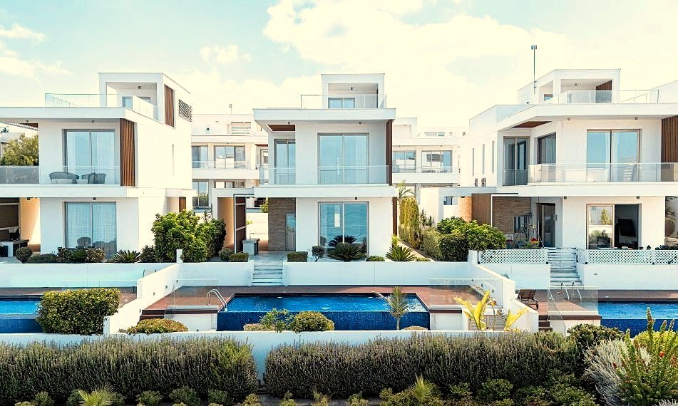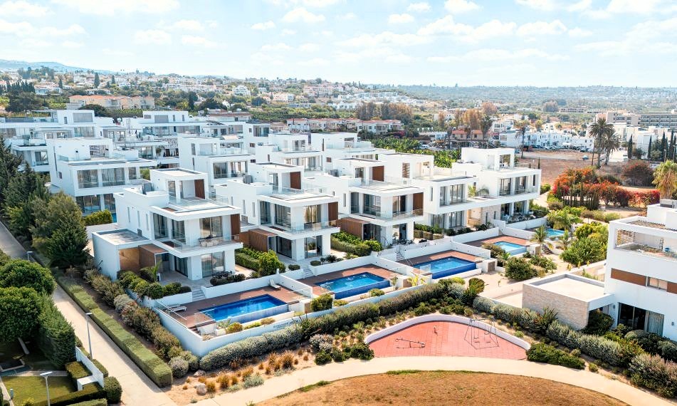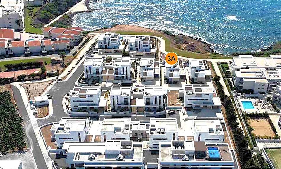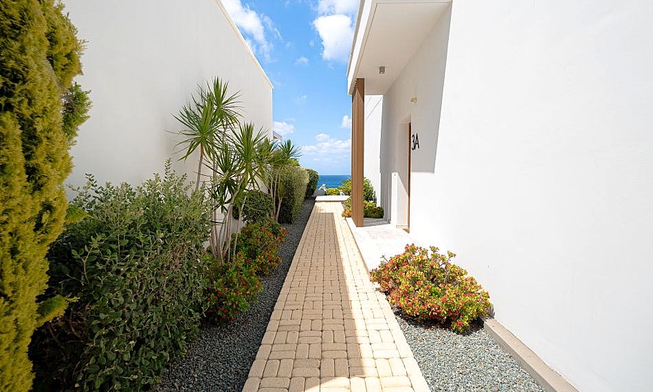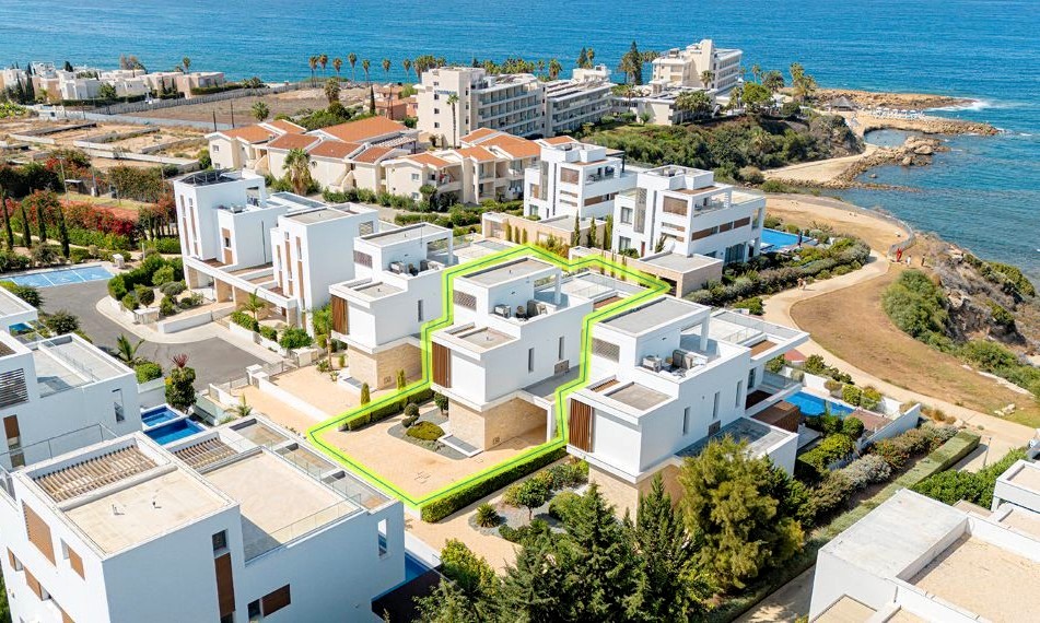 This exclusive gated coastal complex comprises 14 stylish villas with sea views and a compact shopping center at the entrance. Situated directly on the Mediterranean coast, just steps from the beach and the coastal road connecting the area to Paphos.