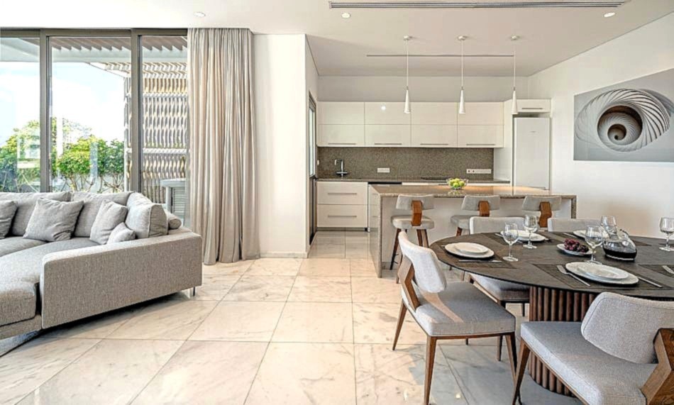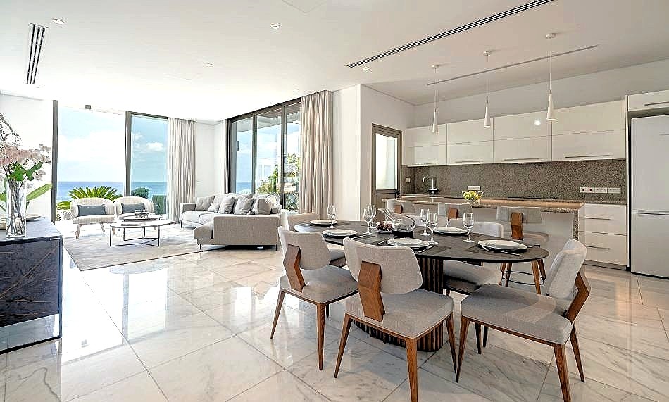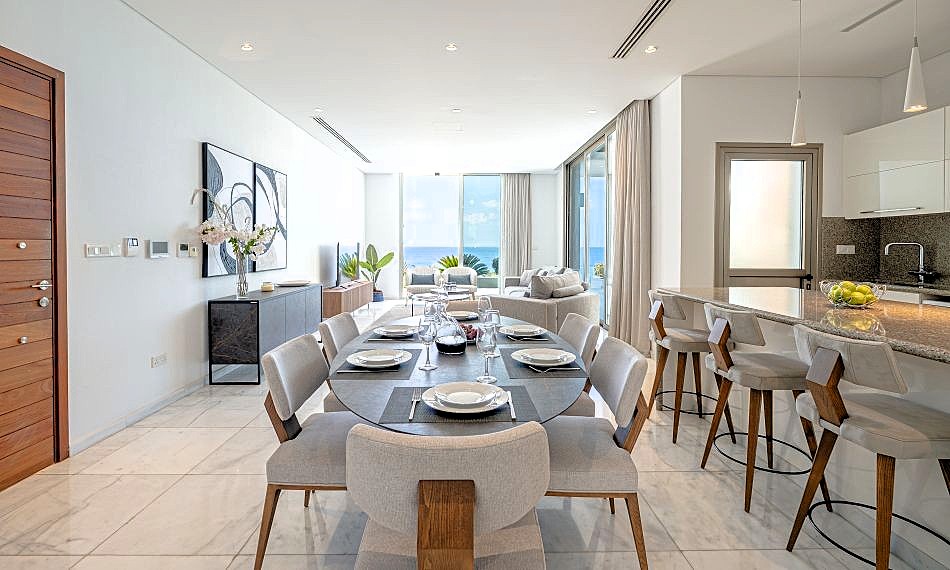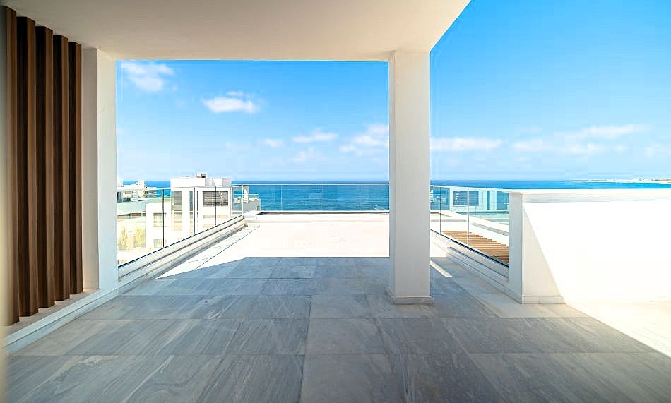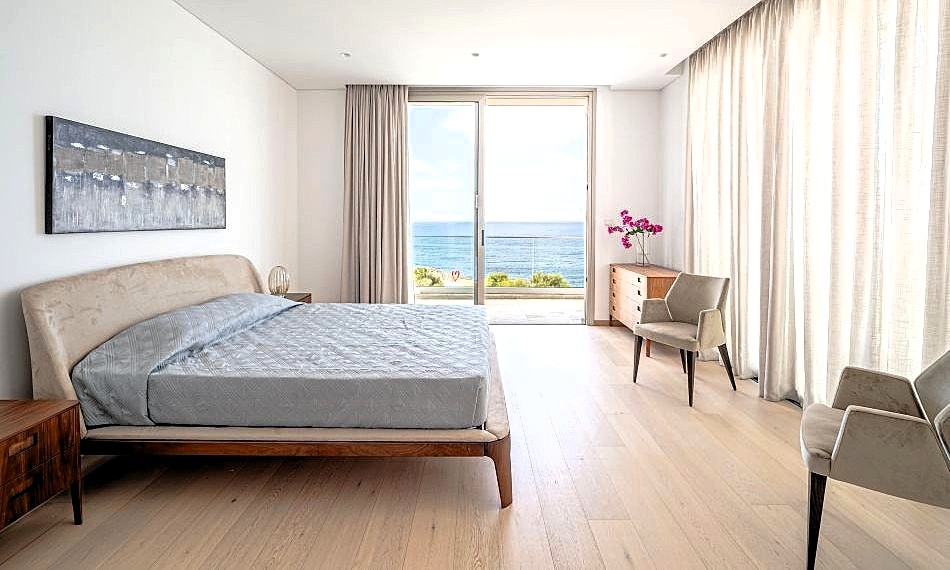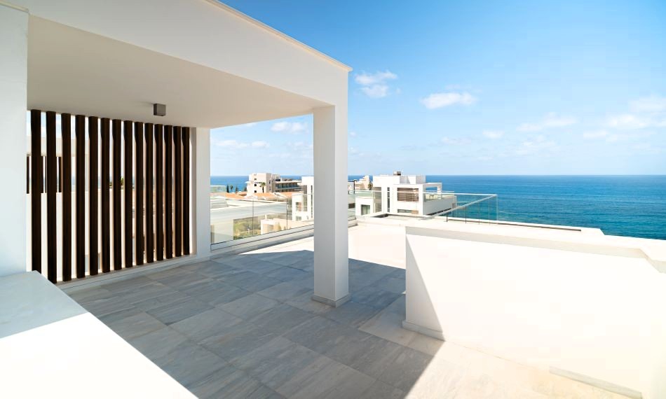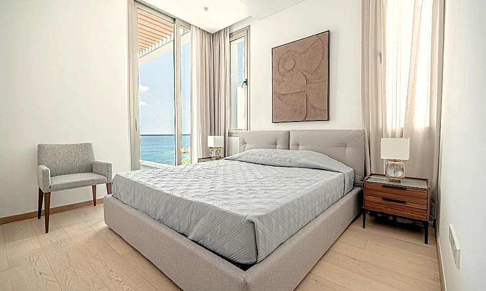 Natural materials and elements of Cypriot tradition create an atmosphere of refined comfort, while panoramic windows and a panoramic rooftop terrace offer breathtaking views of the sea at any time of day.