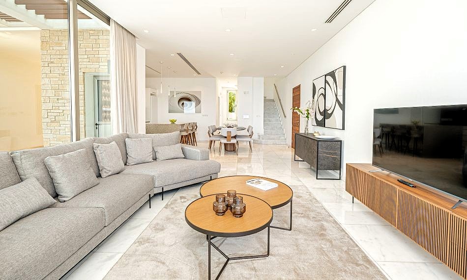 This contemporary villa, with its sophisticated architecture and newly built just four years ago, comprises three living levels and a spectacular rooftop terrace. Exquisite furnishings and a full range of modern amenities allow you to immediately enjoy life under the Cypriot sun, with views of the Mediterranean Sea and the scents of the local nature.