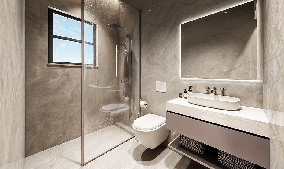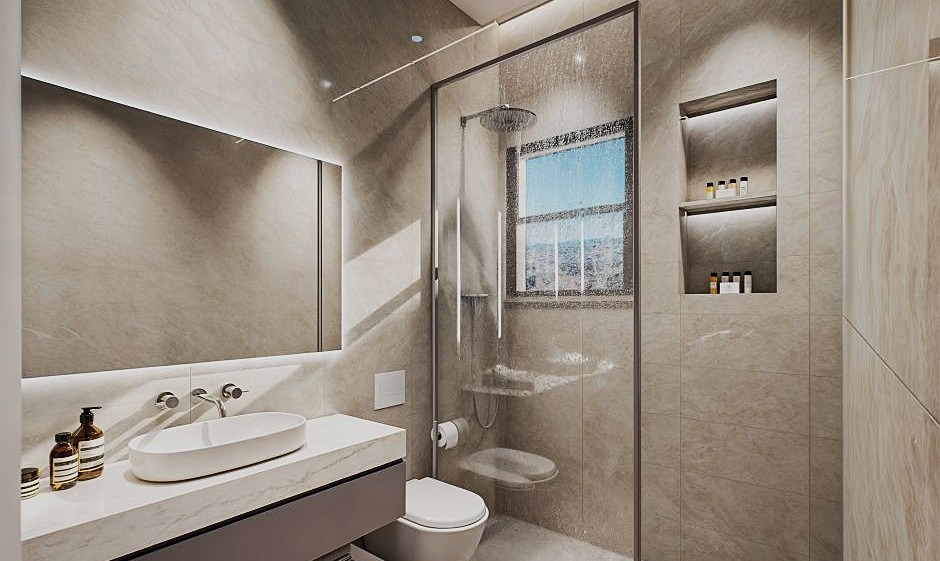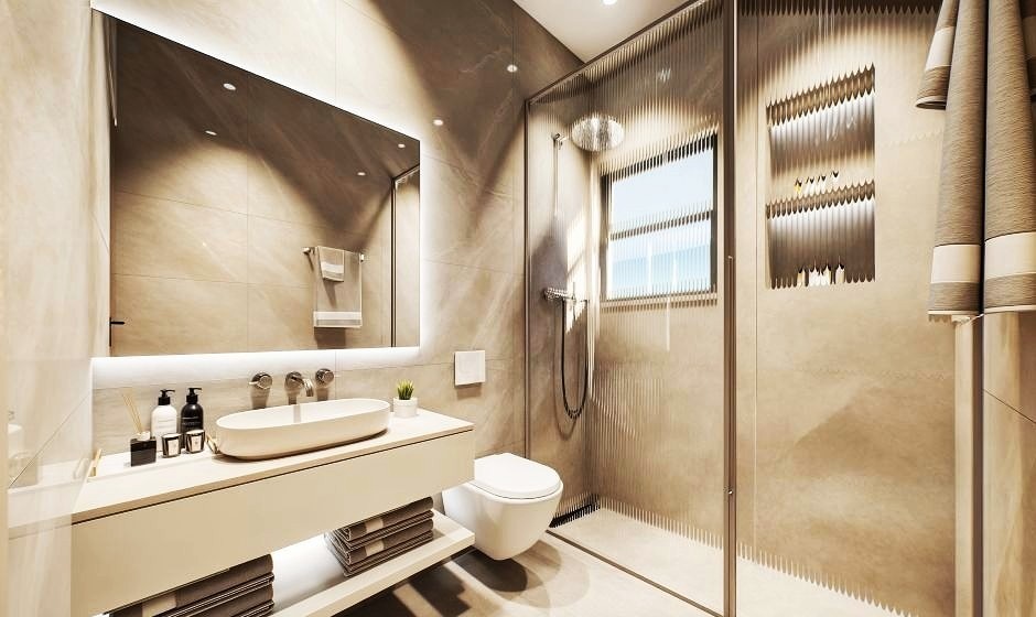 • Modern bathrooms with showers and wall-hung toilets