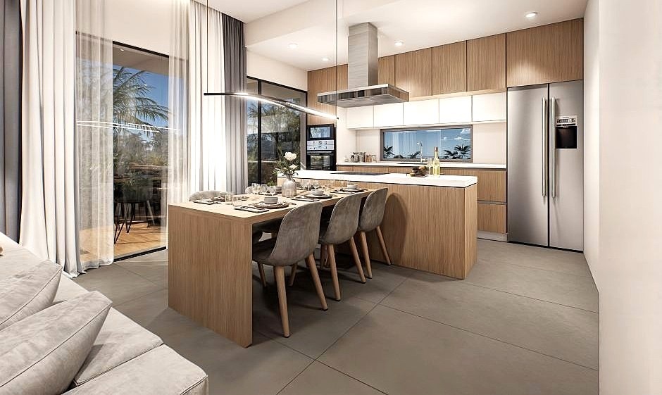 These new apartments in the Kato Paphos area will be equipped with smart technology and video intercoms, and the upper level will also offer sea views. Each apartment also features stylish built-in kitchens and wardrobes, Spanish porcelain tiles, laminate flooring in the bedrooms, modern showers, and wall-mounted toilets. Owners can also install concealed VRV air conditioning systems and underfloor heating.