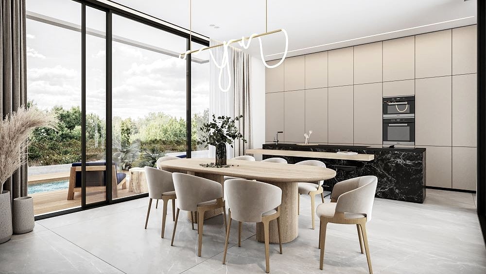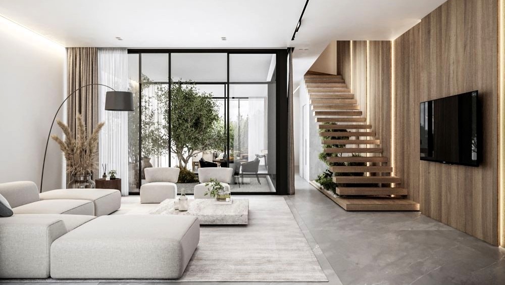 The complex comprises six ergonomic villas, each offering a private pool, three bedrooms, and three modern bathrooms. The minimalist design highlights high ceilings, large windows, and a thoughtful layout that creates a feeling of spaciousness and natural light. Each villa also boasts a spacious rooftop terrace with panoramic views.