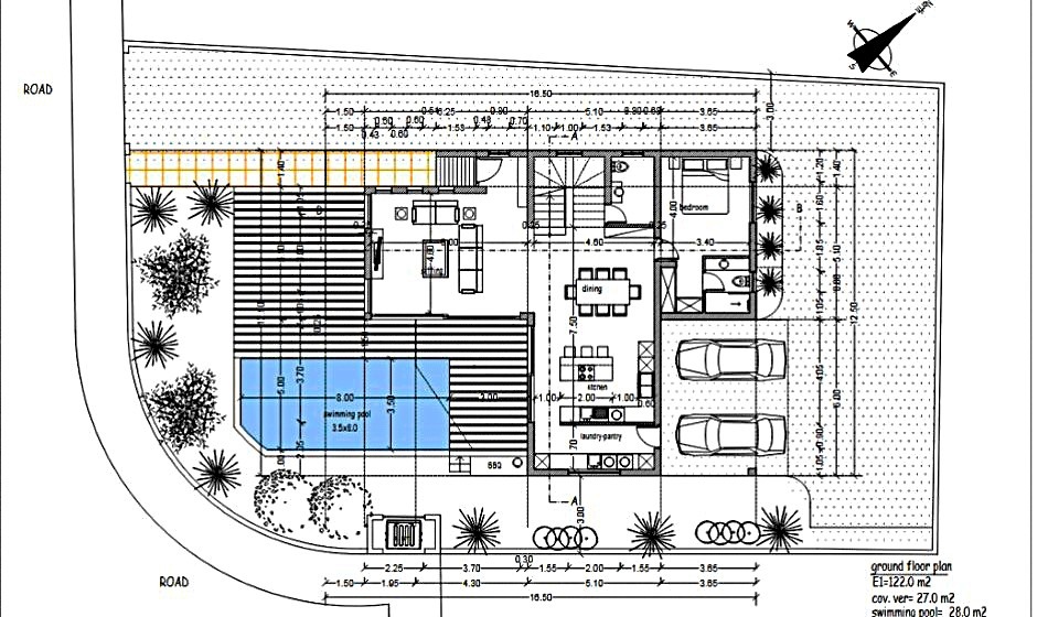 - Private 3.5x8m tiled pool and parking for 3 cars