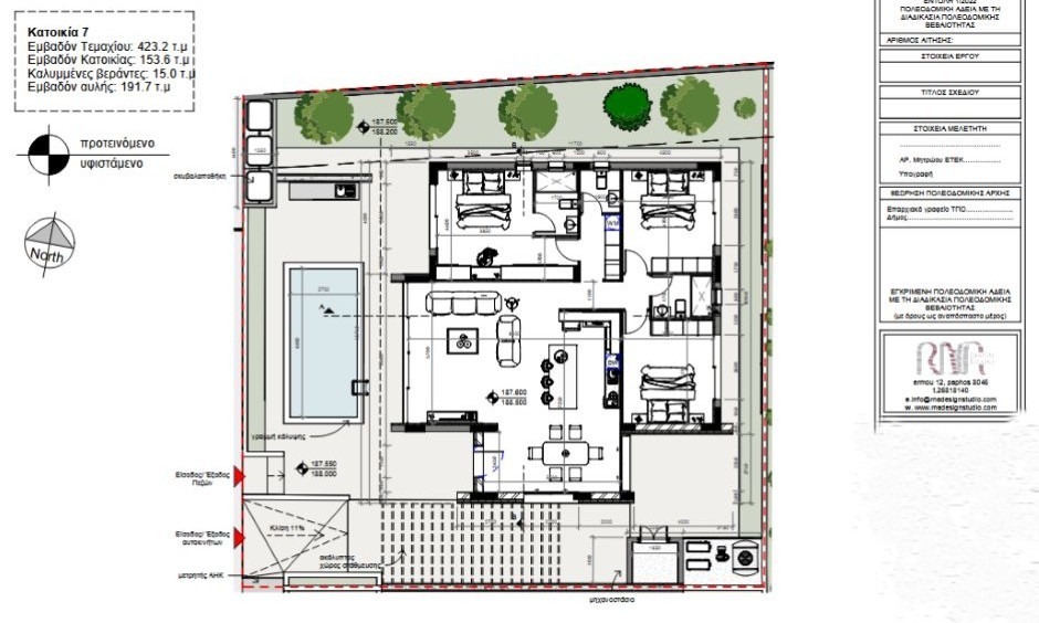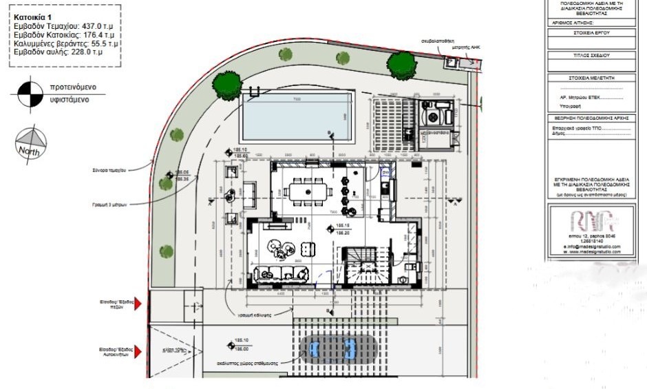 - Interior covered area: 176 m² | Covered verandas: 57 m² – 55 m²