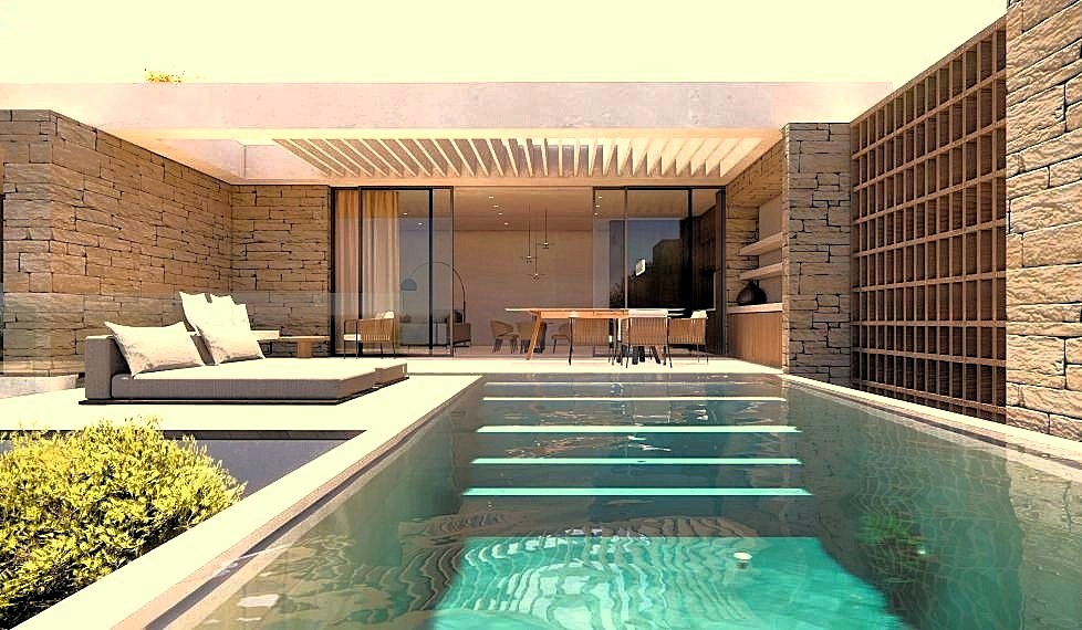 • Architectural style. The project embodies the elegance of contemporary Mediterranean style, functionality, premium amenities, and cutting-edge technology. It consists of four detached villas in a minimalist style, set on spacious plots and featuring high-quality finishes that highlight the sophisticated architecture.