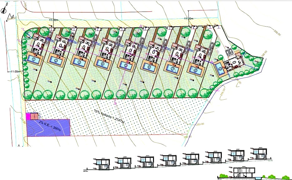 This small project, carefully designed and perfectly integrated into the natural environment, offers not just housing, but an atmosphere of sophistication and comfort. It is located in a quiet and peaceful area on a hillside, surrounded by picturesque landscapes, just a few minutes drive from Paphos infrastructure, educational institutions and beaches.